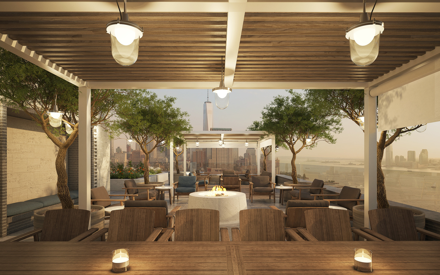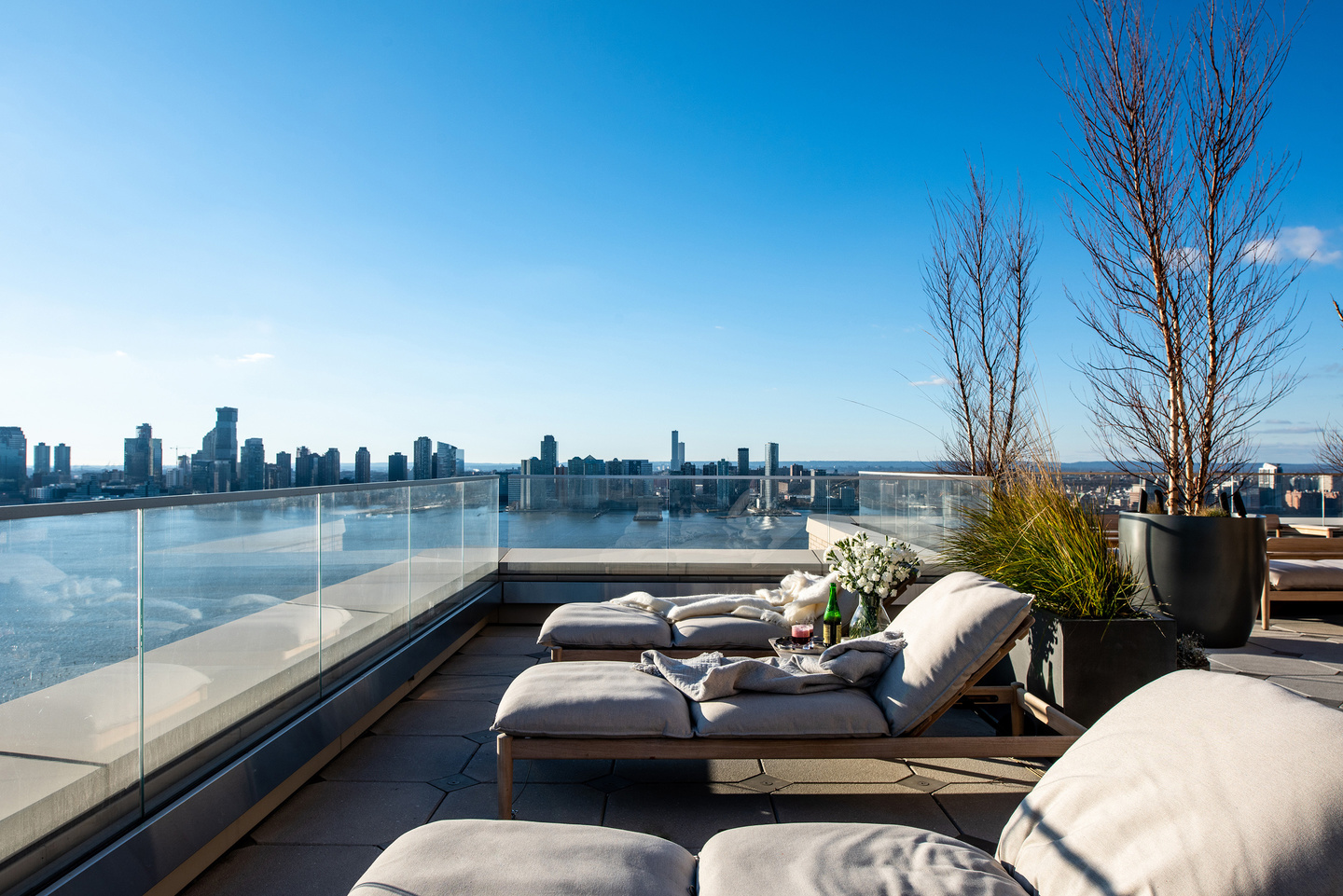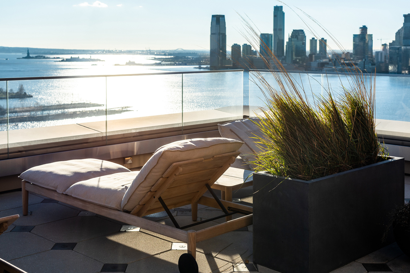 The Greenwich West rooftop garden is a unique space for all residents. Various lounge and seating areas are choreographed into peaceful, landscaped vignettes, each offering breathtaking, unobstructed views of the city and river, and encouraging a sense of community among residents.