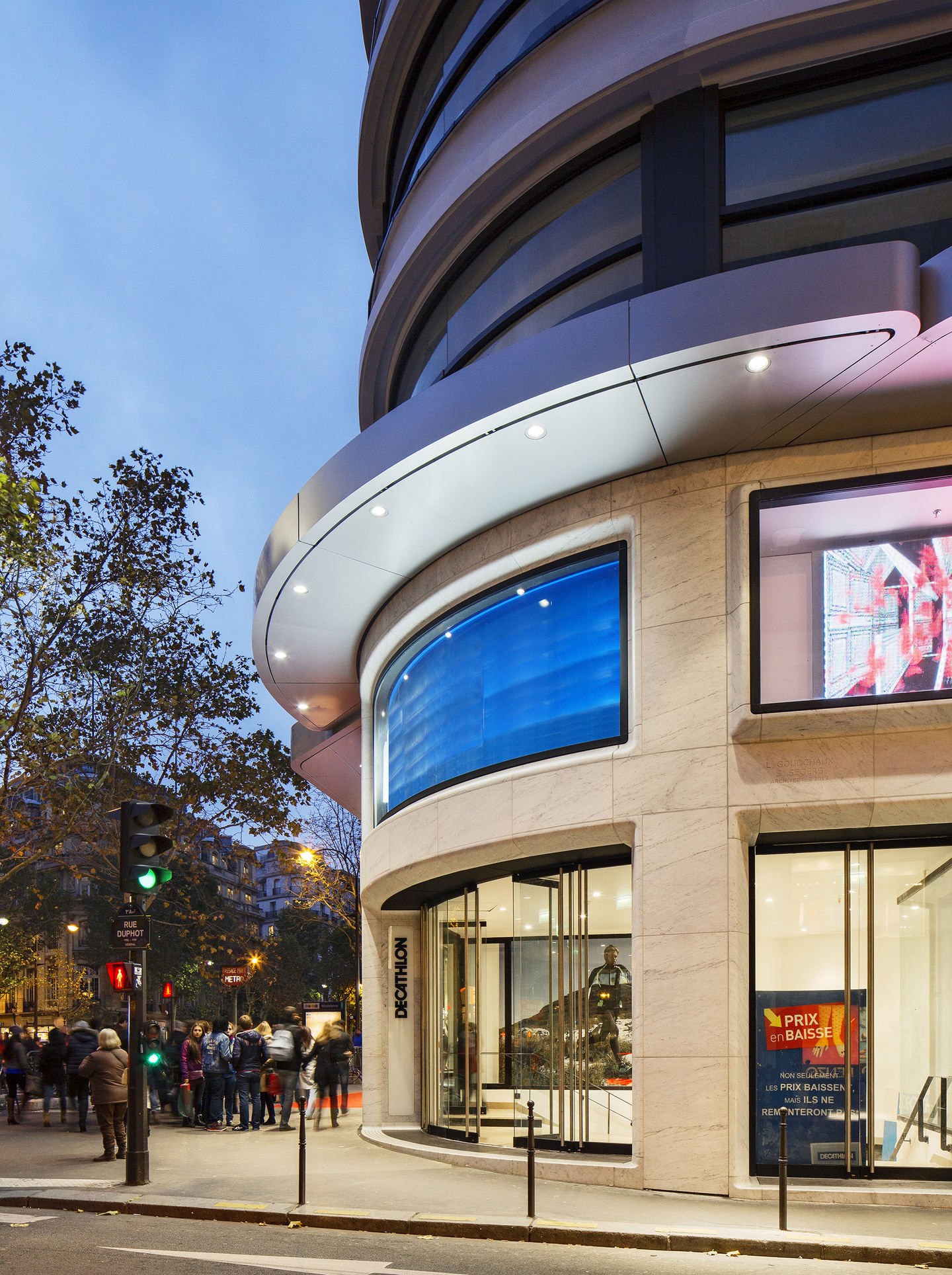 In order to reinstate the splendour of this Department Store created in 1932 by Louis Faure-Dujarric and to provide a more efficient layout, Sébastien Segers and Laurent Goudchaux have decided to match the historical story with a contemporaneous design. They have provided a new reading of the grid and of the principles of the existing facade: design rationality, horizontal strips, plain geometrical shapes, show windows of large dimensions, noble materials. The gapping angle leading to the shop in the basement has been replaced by a true circular entrance. Inside the building, the circulations layout, the structure and the ductwork have been carefully reviewed so to provide an easy understanding of the volumes.