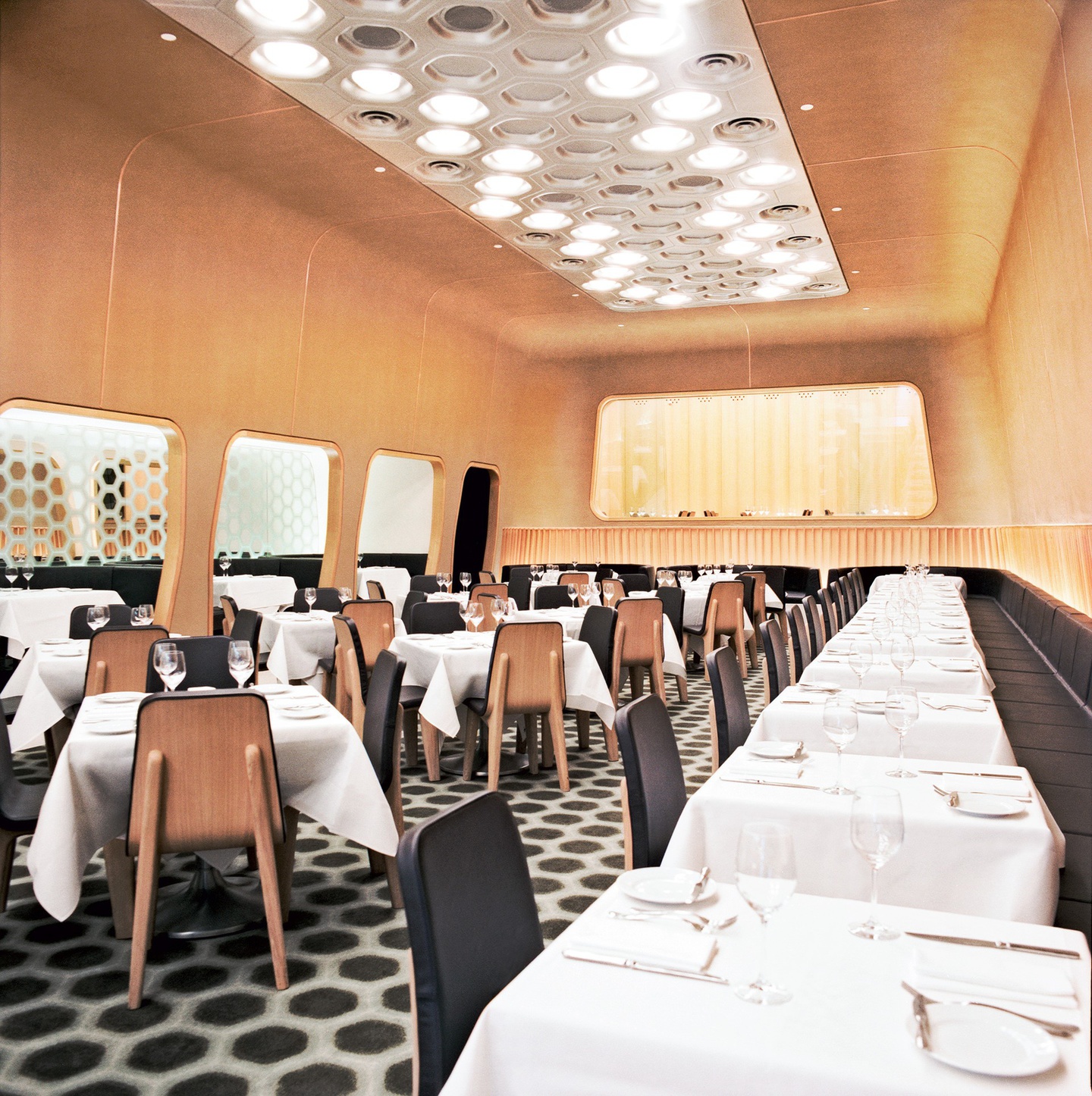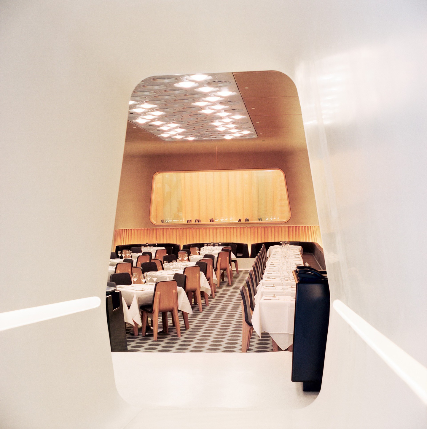 It is in the Lever House Tower, built in 1953 by Gordon Bunshaft of SOM (Skidmore, Owings & Merill) that the first architectural Project of Sébastien Segers with Marc Newson is located. It is typical of the International style and is filed with the New York Preservation Commission. In 2001, the Owner asks them to design a restaurant according to the spirit of the 50’. The location: a room with no windows, on the Ground floor of the building.